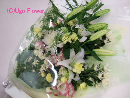 | 〜お花は生活のアクセントであり元気のもとです。〜 もっと近くにに置いてやってください。 贈り物にも....きっと喜ぶ笑顔がありますよ。 ◎下記写真をお電話、 Eメール でのお問合わせの際は 写真下の商品NOをお伝えください。価格や花材の適切なご返信ができます。 ◎ご注文の際は季節により花材が変わりますのでイメージとして参考にしてください。 ●お花の画像を個人的にご利用したい方は(無料)でできますので 利用内容をメールで連絡して当方の了解を得てからご利用ください。 無断使用はご遠慮ください。 Copy of without permission prohibition Copyright (C) Ugo Flower Co.,Ltd All rights reserved |