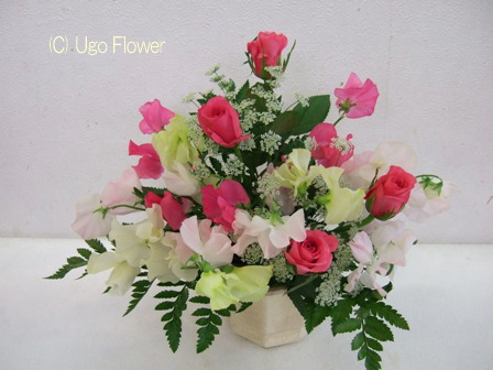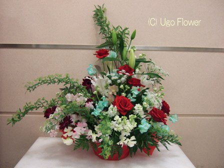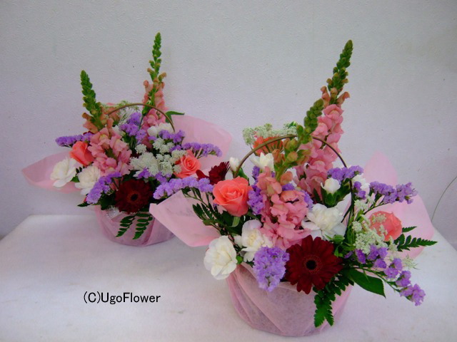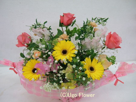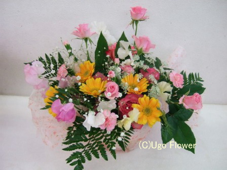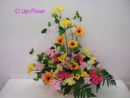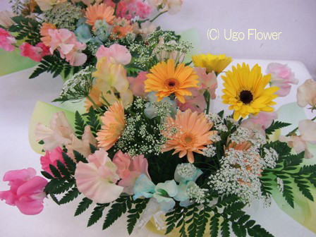 | 〜お花は生活のアクセントであり元気のもとです。〜 もっと近くにに置いてやってください。 贈り物にも....きっと喜ぶ笑顔がありますよ。 ◎下記写真をお電話、 Eメール でのお問合わせの際は 写真下の商品NOをお伝えください。価格や花材の適切なご返信ができます。 ◎ご注文の際は季節により花材が変わりますのでイメージとして参考にしてください。 ●お花の画像を個人的にご利用したい方は(無料)でできますので 利用内容をメールで連絡して当方の了解を得てからご利用ください。 無断使用はご遠慮ください。 Copy of without permission prohibition Copyright (C) Ugo Flower Co.,Ltd All rights reserved |