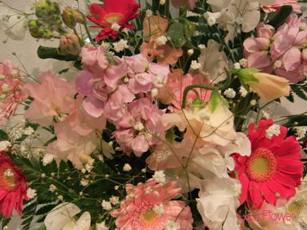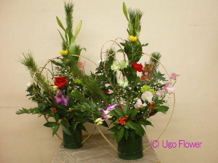 | 〜お花は生活のアクセントであり元気のもとです。〜 もっと近くにに置いてやってください。 贈り物にも....きっと喜ぶ笑顔がありますよ。 ◎下記写真をお電話、 Eメール でのお問合わせの際は 写真下の商品NOをお伝えください。価格や花材の適切なご返信ができます。 ◎ご注文の際は季節により花材が変わりますのでイメージとして参考にしてください。 ●お花の画像を個人的にご利用したい方は(無料)でできますので 利用内容をメールで連絡して当方の了解を得てからご利用ください。 無断使用はご遠慮ください。 Copy of without permission prohibition Copyright (C) Ugo Flower Co.,Ltd All rights reserved |