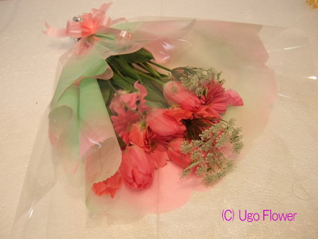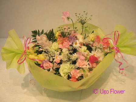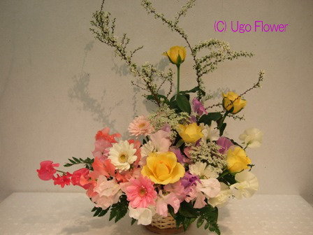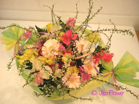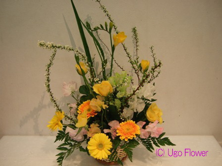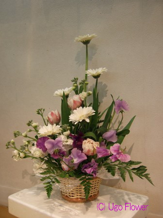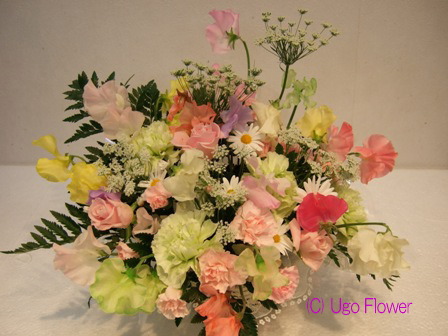 | 〜お花は生活のアクセントであり元気のもとです。〜 もっと近くにに置いてやってください。 贈り物にも....きっと喜ぶ笑顔がありますよ。 06sep- ◎下記写真をお電話、 Eメール でのお問合わせの際は 写真下の商品NOをお伝えください。価格や花材の適切なご返信ができます。 ◎ご注文の際は季節により花材が変わりますのでイメージとして参考にしてください。 ●お花の画像を個人的にご利用したい方は(無料)でできますので 利用内容をメールで連絡して当方の了解を得てからご利用ください。 無断使用はご遠慮ください。 Copy of without permission prohibition Copyright (C) Ugo Flower Co.,Ltd All rights reserved |