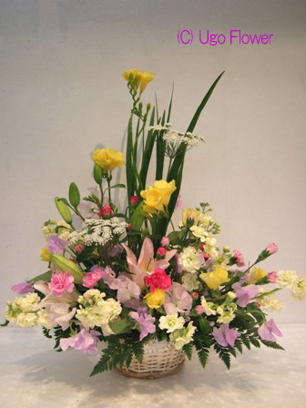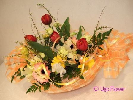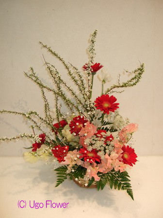 | 〜お花は生活のアクセントであり元気のもとです。〜 もっと近くにに置いてやってください。 贈り物にも....きっと喜ぶ笑顔がありますよ。 ◎下記写真をお電話、 Eメール でのお問合わせの際は 写真下の商品NOをお伝えください。価格や花材の適切なご返信ができます。 ◎ご注文の際は季節により花材が変わりますのでイメージとして参考にしてください。 ●お花の画像を個人的にご利用したい方は(無料)でできますので 利用内容をメールで連絡して当方の了解を得てからご利用ください。 無断使用はご遠慮ください。 Copy of without permission prohibition Copyright (C) Ugo Flower Co.,Ltd All rights reserved |